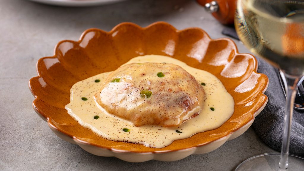 (shrimp, sea bass and a cloud of Parmesan and arugula)
