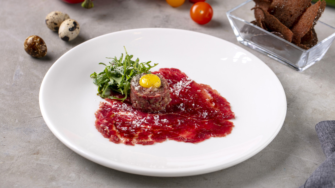 (запеченные бычьи хвосты, картофель пай, огурцы «Сладкий чили»)