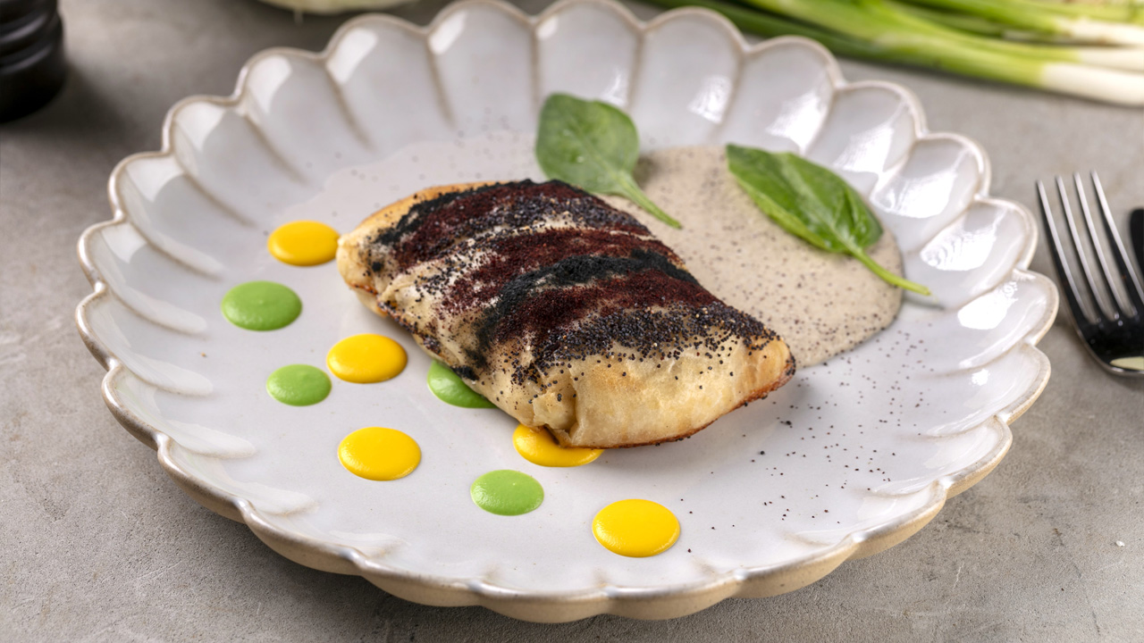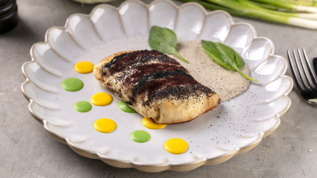 (креветки, сибас и облако из пармезана и руколы)